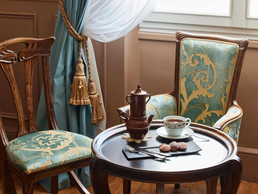 Le bar La Belle Époque, avec son ambiance cosy et chaleureuse, est le lieu parfait pour un moment de détente en fin de journée. En hiver, la cheminée réchauffe l’atmosphère, tandis qu’en été, les fenêtres ouvertes laissent entrer la brise marine. Installez-vous confortablement et goûtez aux cocktails raffinés proposés, ou optez pour un thé accompagné des fameuses madeleines qui rappellent le passage de Proust en ces lieux.